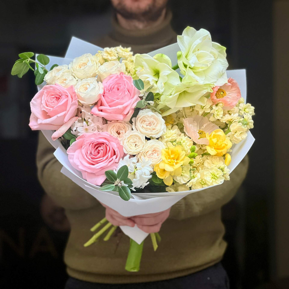 Залежно від сезонності і наявності квітів ми залишаємо за собою право змінювати склад букета без повідомлення замовника, зберігаючи при цьому авторський стиль, колірне рішення, концепцію букета. У разі, якщо необхідна заміна базової квітки, заміна відбувається з узгодженням із замовником. Якщо для Вас критично важлива присутність в складі певної квіточки – обов'язково зв'яжіться з нами та повідомте про це.