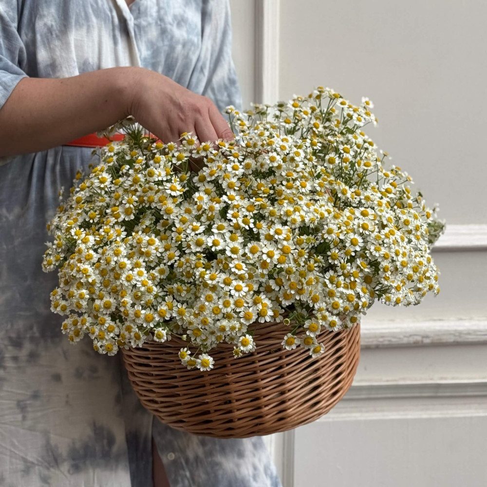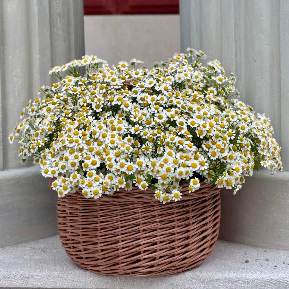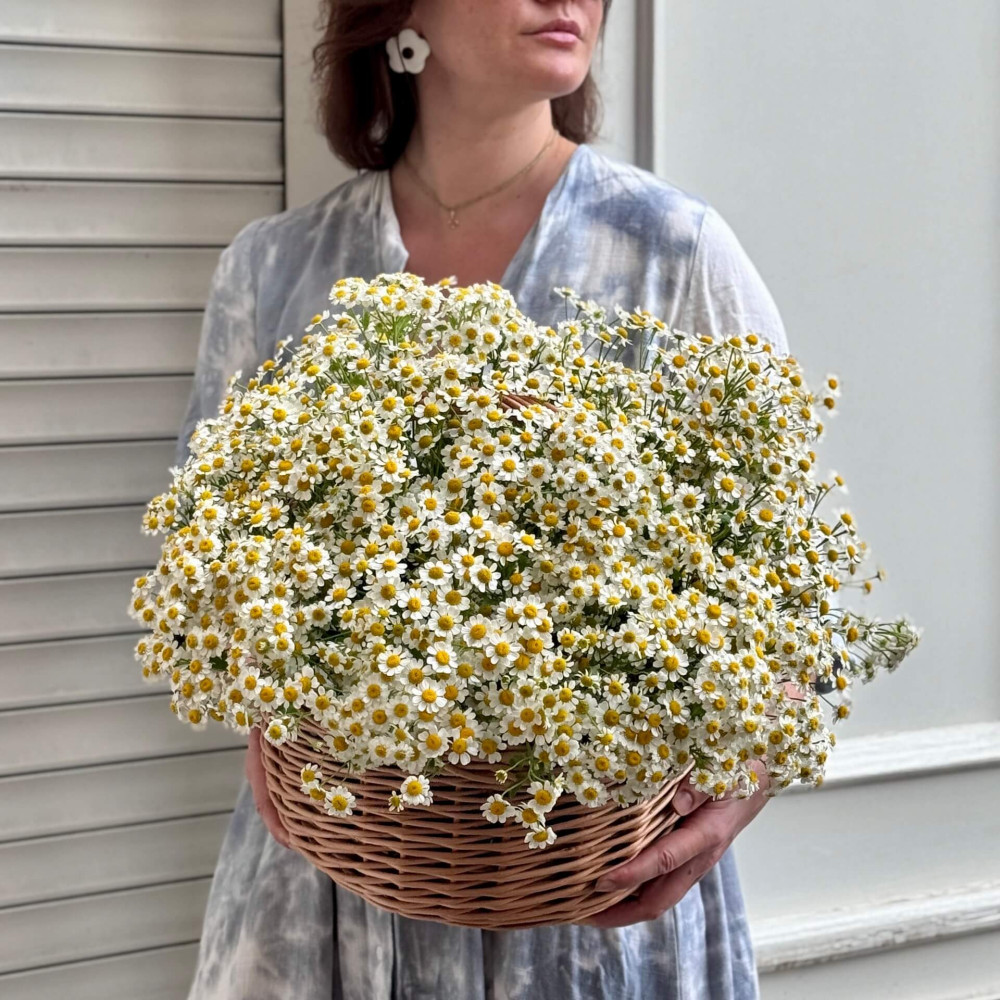 - Как заказать Роскошная корзина из танацетума «Ромашковая мечта»? ❯