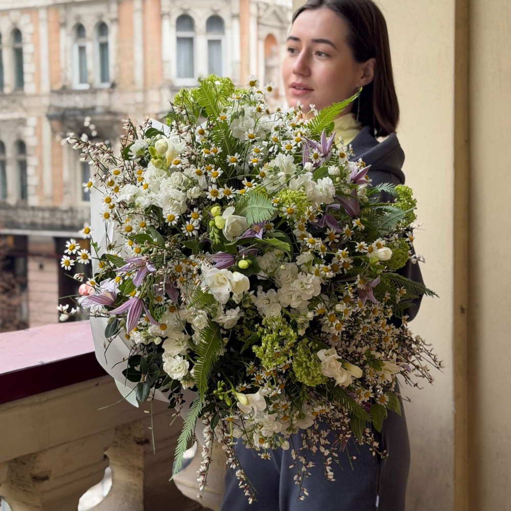 - Как заказать Шикарный букет из полевых цветов с добавлением клематиса и амбреллы «Вселенная для тебя!»? ❯