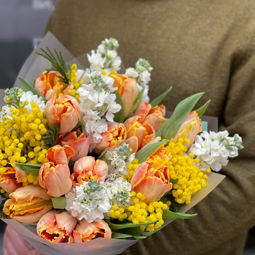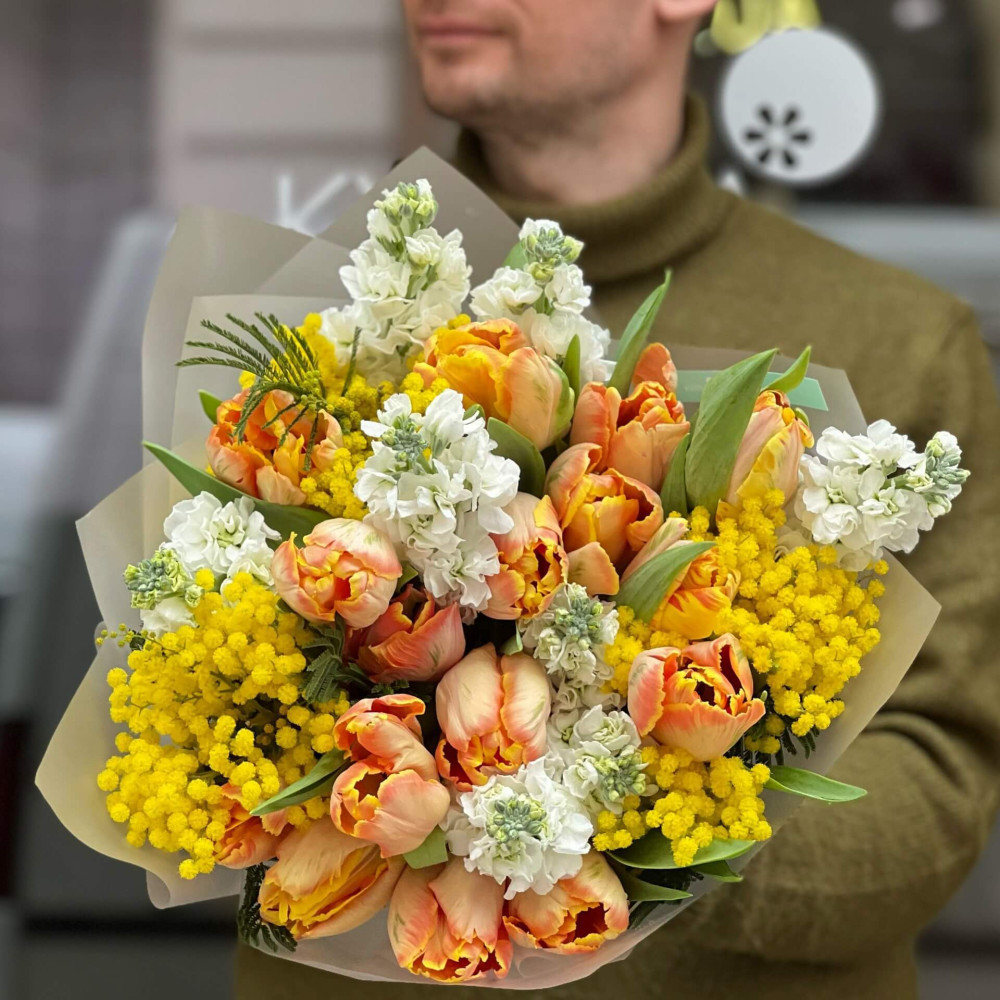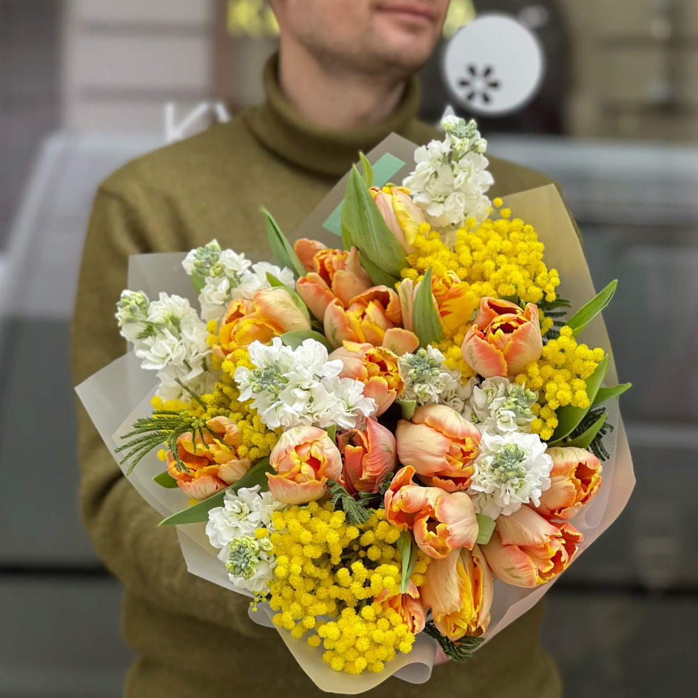 - Как заказать Солнечный букет из душистой мимозы и волшебных тюльпанов «Ароматная весна»? ❯