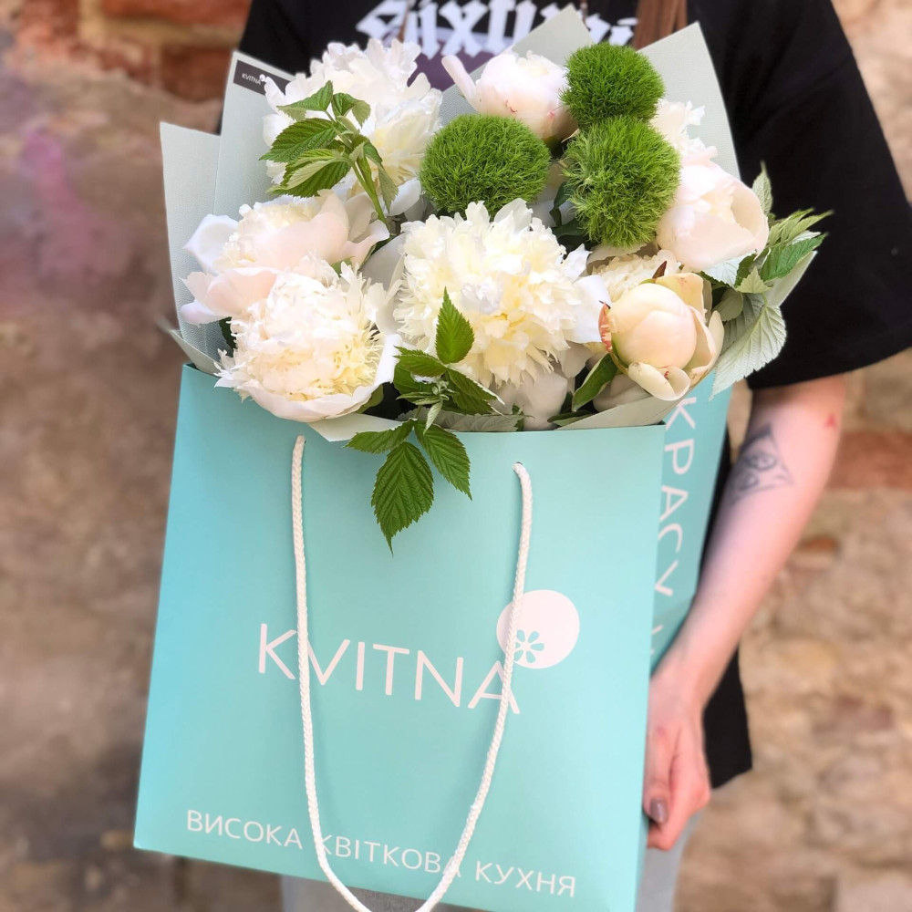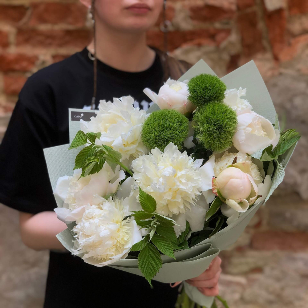 - Как заказать Светлый букет из пионов «Белый налив»? ❯