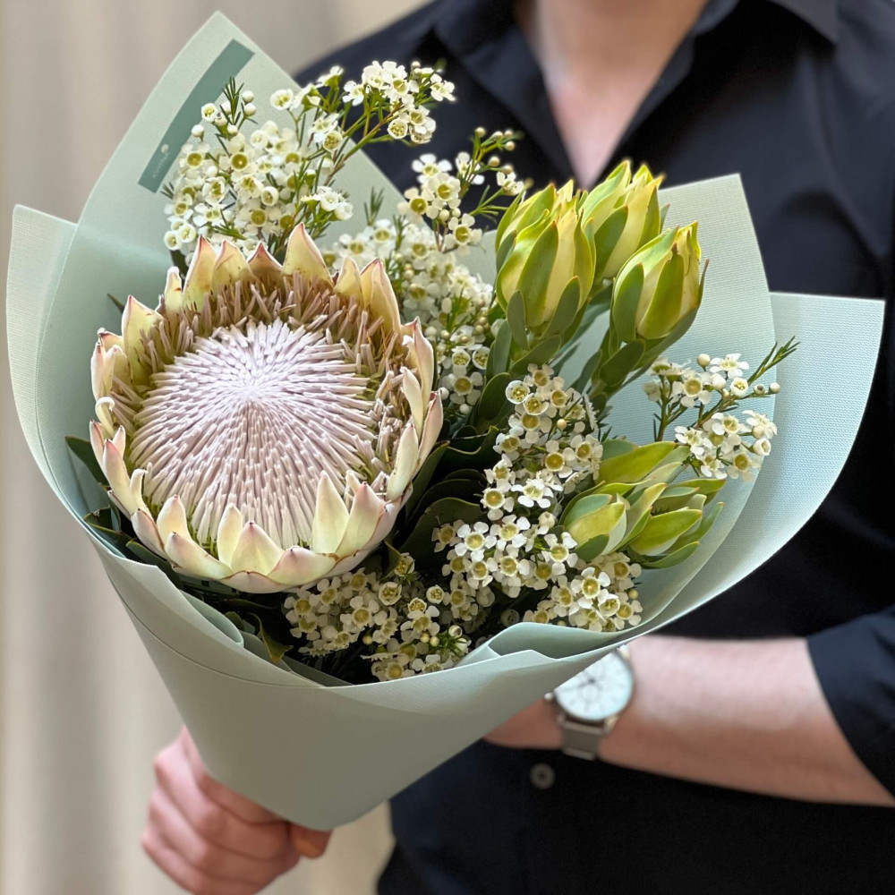 - Как заказать Светлый экзотический букет с протеей «Звезда Калифорнии»? ❯