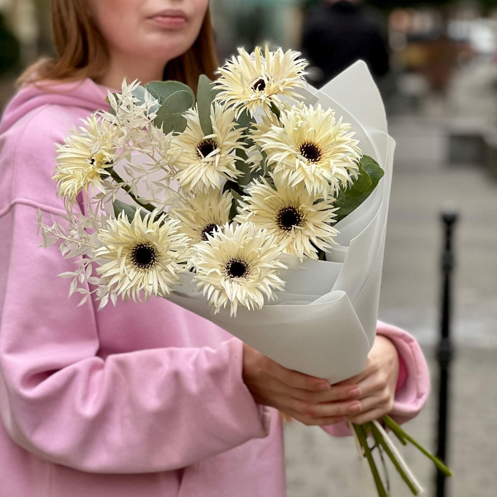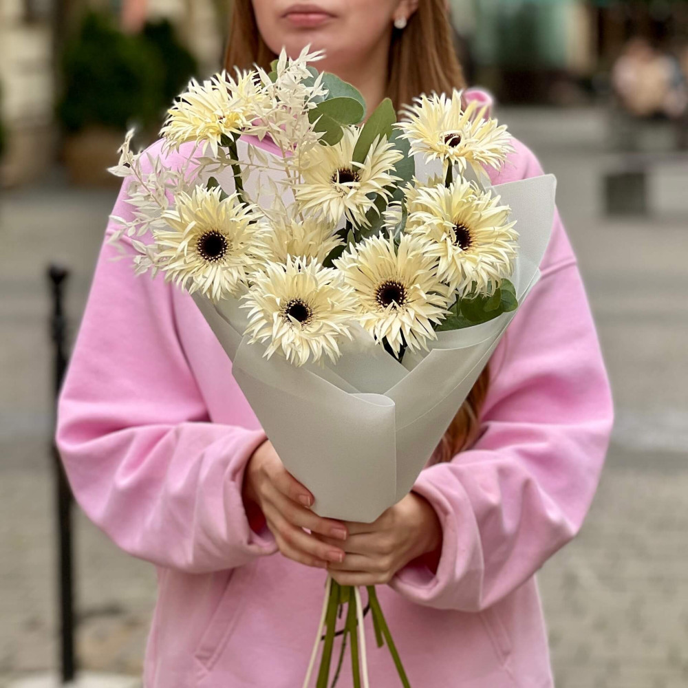 - Как заказать Светлый букет с герберой Spider «Паутинка нежности»? ❯