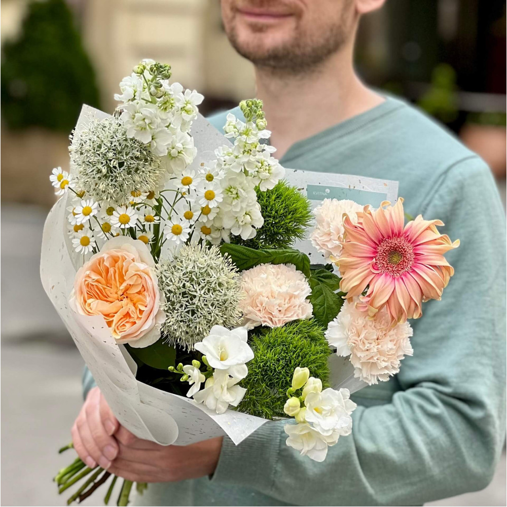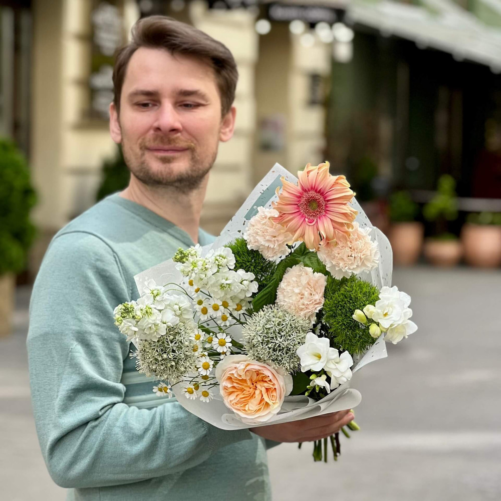 И это не обязательно плюсы, это особенности, которые нужно понимать. Тогда и выбор "где купить букет во Львове" - сделать будет значительно проще.- Каждый букет Kvitna - уникален. Это значит если Вы закажете у нас какой то из букетов на сайте - Вы не получите точно такой же. Некоторых это смущает, такие люди не хотят "рисковать", желают "в точности, как на картинке". У Квитна - каждый букет это творческий поиск, это увлечение, слияние с цветами, образом получателя и задачей. Да, мы можем принять за вектор, сделать похожий букет, в том же стиле, цветовой гамме, составу цветов... Но нам скучно делать по шаблону. Ведь букет, представленный на картинке - делался для другого человека, для другого повода, под другое настроение и вдохновение. У Вас будет все по-другому.