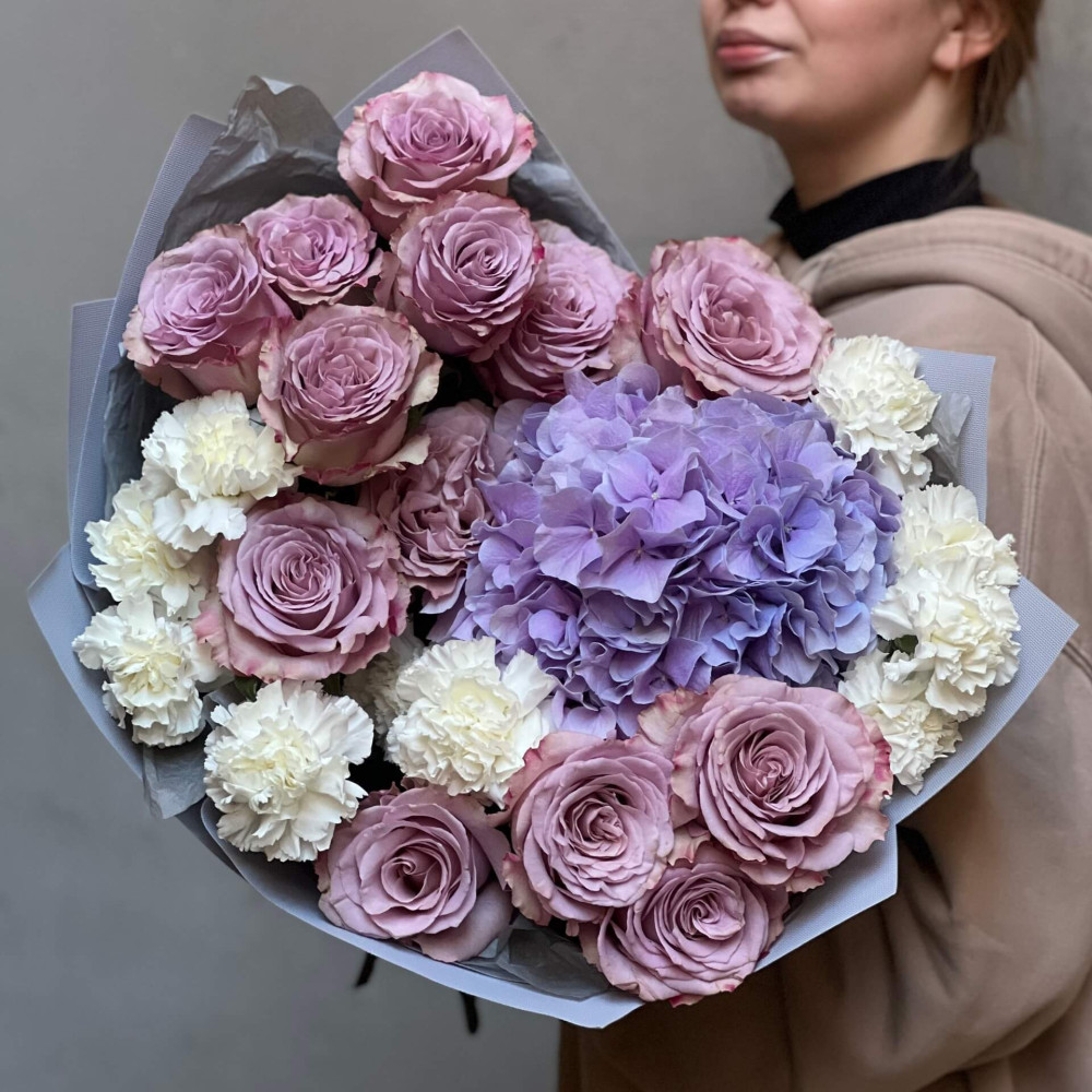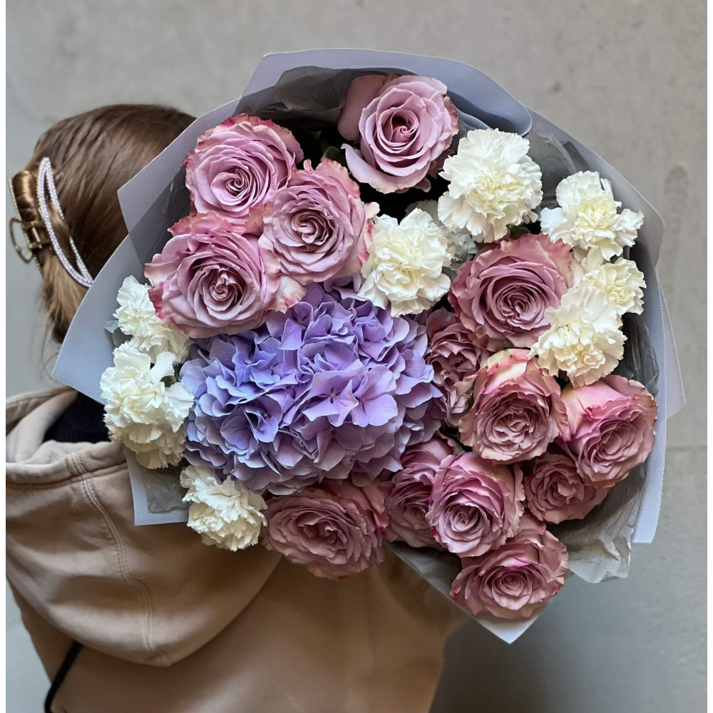 Цветы: Гортензия, Диантус (Гвоздика), Роза