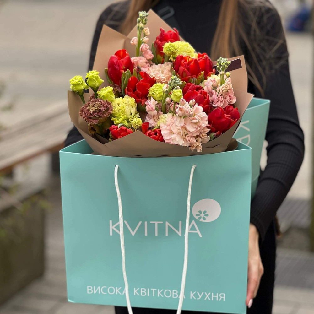 И это не обязательно плюсы, это особенности, которые нужно понимать. Тогда и выбор "где купить букет во Львове" - сделать будет значительно проще.- Каждый букет Kvitna - уникален. Это значит если Вы закажете у нас какой то из букетов на сайте - Вы не получите точно такой же. Некоторых это смущает, такие люди не хотят "рисковать", желают "в точности, как на картинке". У Квитна - каждый букет это творческий поиск, это увлечение, слияние с цветами, образом получателя и задачей. Да, мы можем принять за вектор, сделать похожий букет, в том же стиле, цветовой гамме, составу цветов... Но нам скучно делать по шаблону. Ведь букет, представленный на картинке - делался для другого человека, для другого повода, под другое настроение и вдохновение. У Вас будет все по-другому.