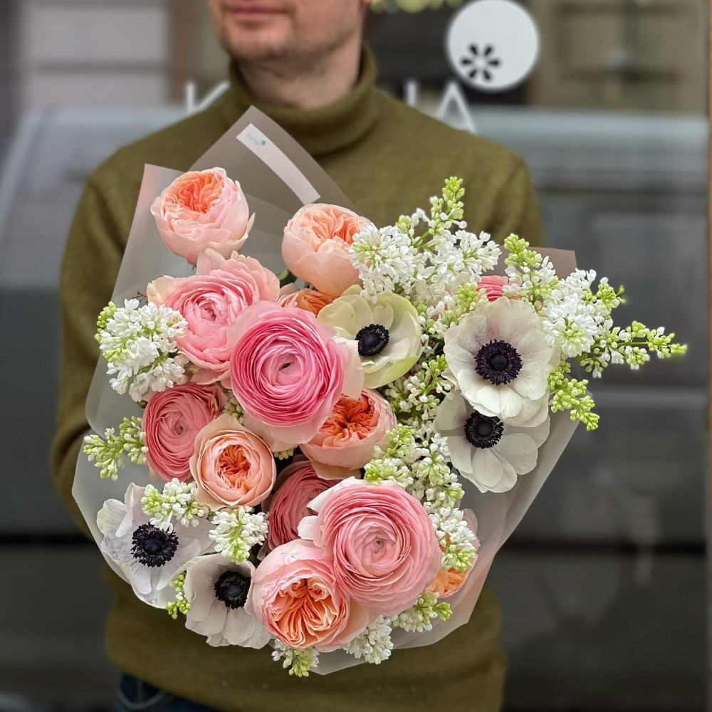 Цветы: Ранунклюс, Анемон, Роза пионовидная, Сирень