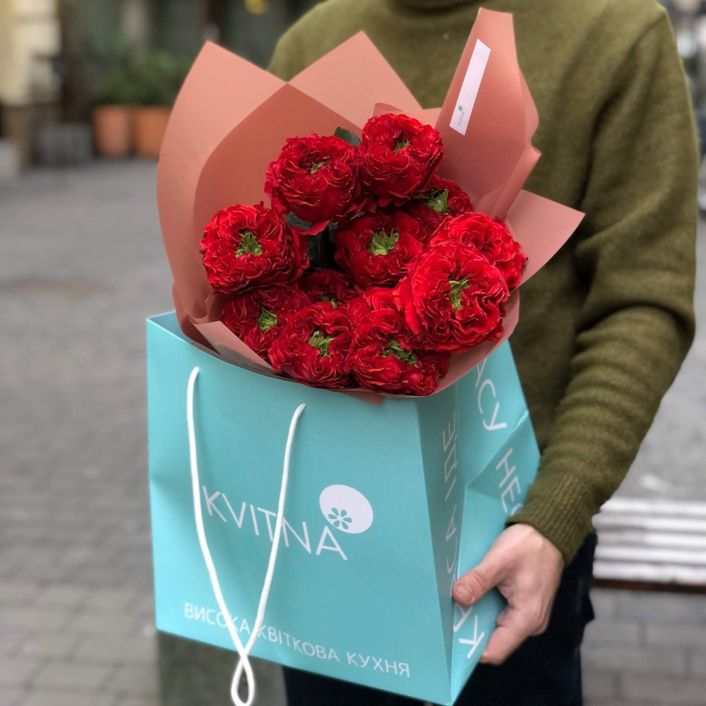 - Букеты от Kvitna доставляются в фирменной упаковке, которую нужно снять при установке цветов в вазу. Не срезайте ленту, связывающую букет, чтобы сохранить форму.