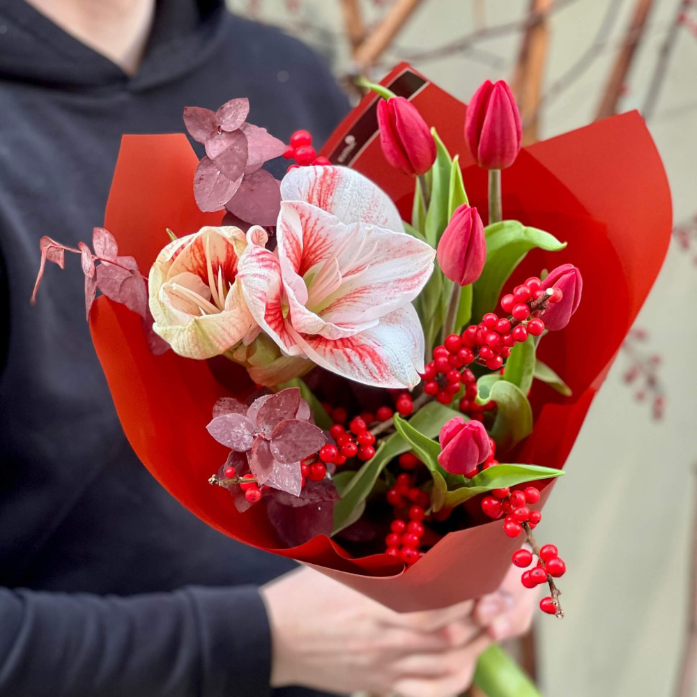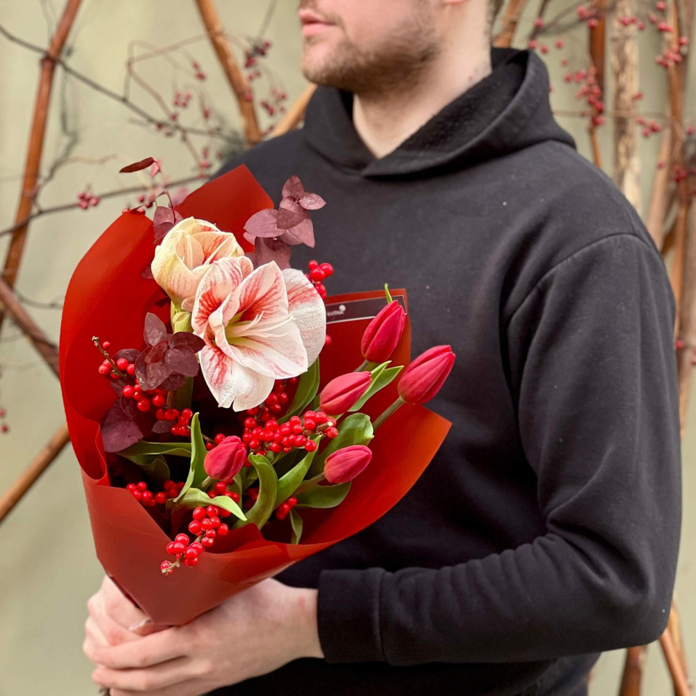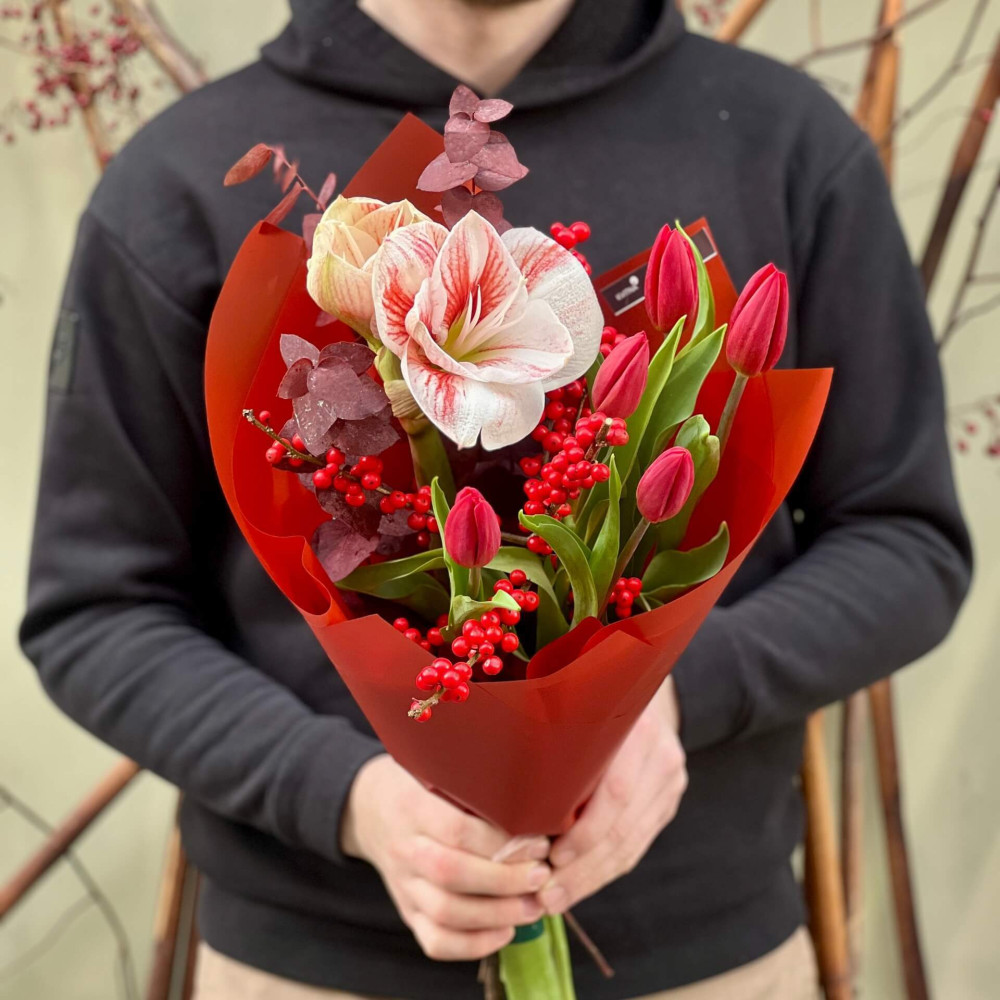 Цветы: Гипеаструм, Эвкалипт, Тюльпан, Илекс