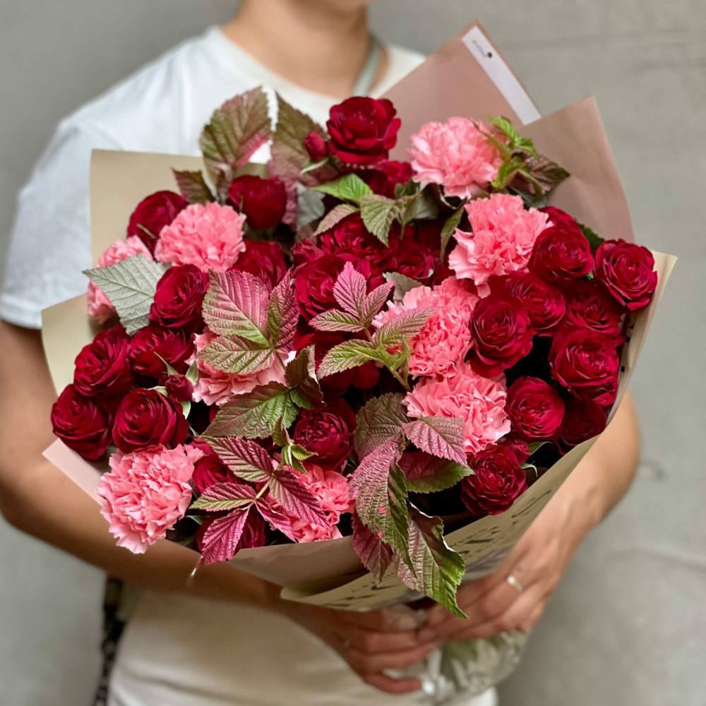 - Как заказать Яркий букет с кустовой розой «Сладкая малинка»? ❯