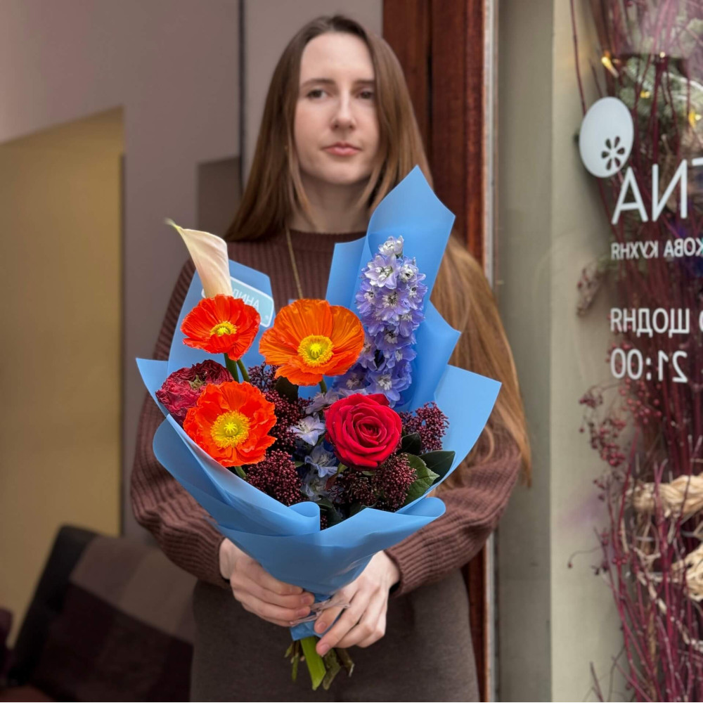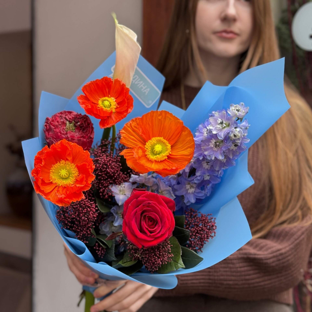 - Как заказать Яркий букет с маками «Неповторимая Оксана»? ❯