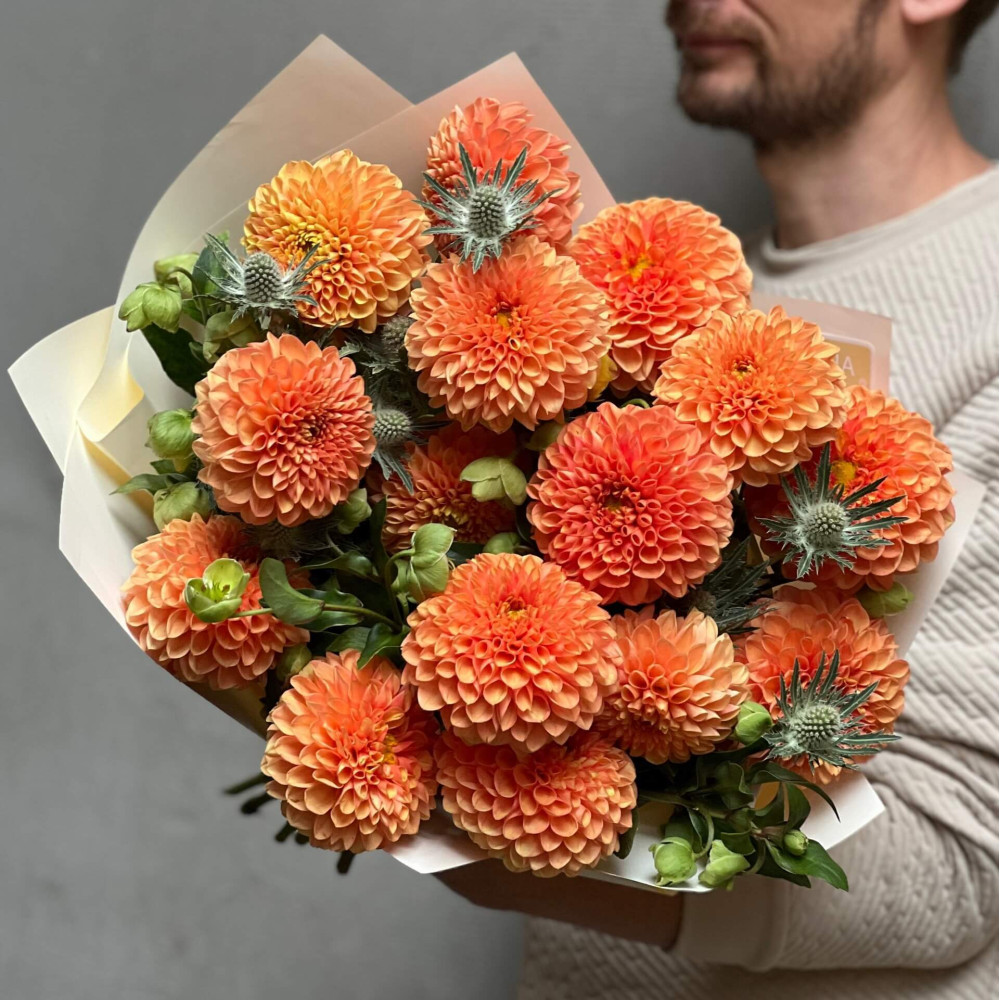 - Как заказать Яркий букет с георгинами «Сладкие апельсины»? ❯