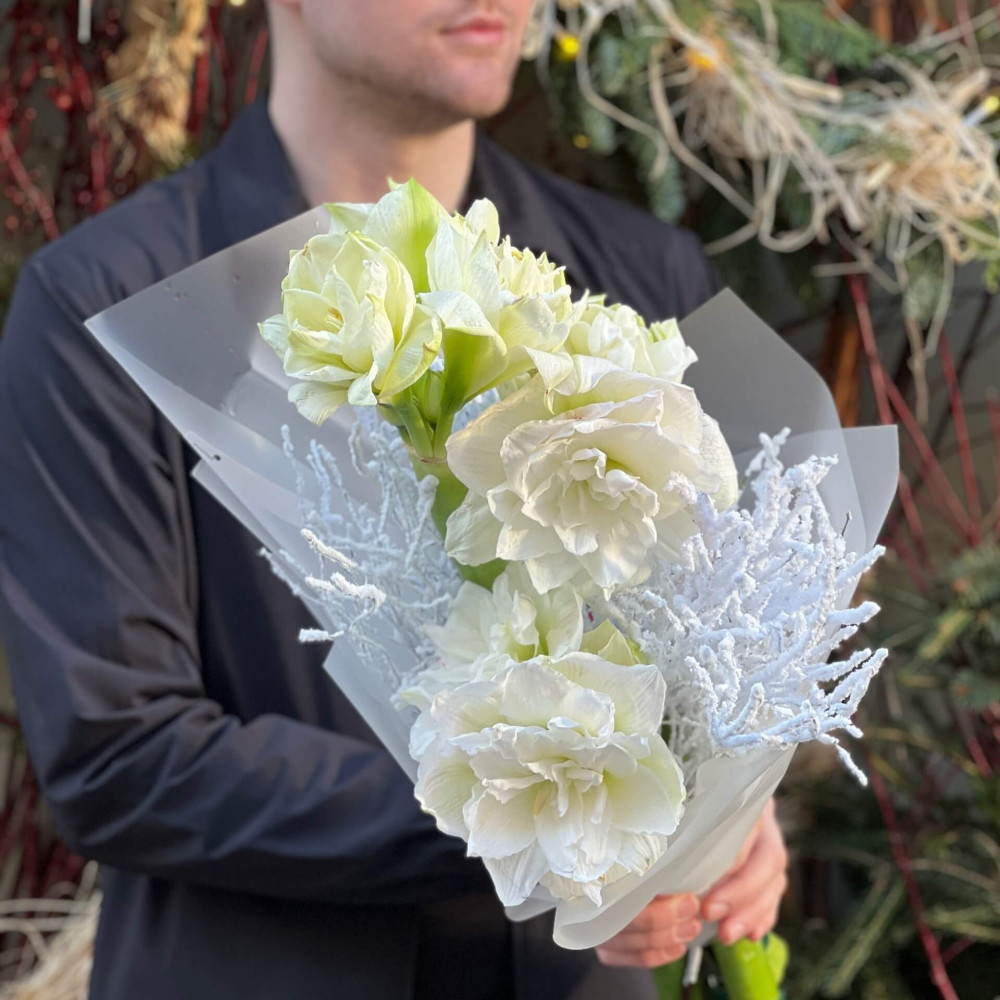 - Как заказать Зимний букет с амариллисами «Комплимент для Насти»? ❯